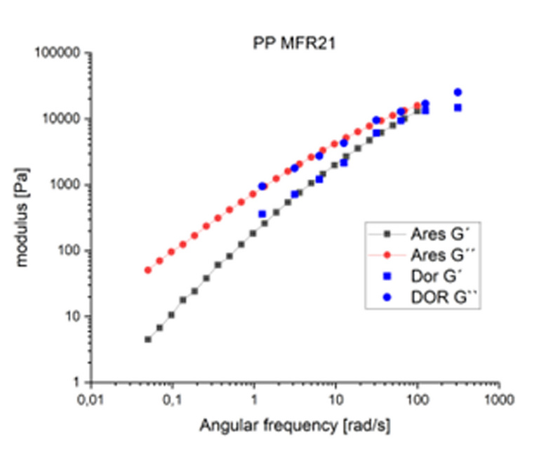 Die seitliche Abbildung beschreibt ein lineares PP mit MFR 21. Auch hier bestätigen die Daten die gute Übereinstimmung zwischen ROR- und RR-Messungen.